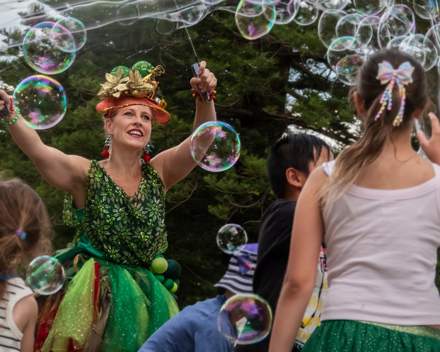 Genevieve is bubble entertainer. She is doing performance for parties and council events. Kids love her and she enjoying her performance.