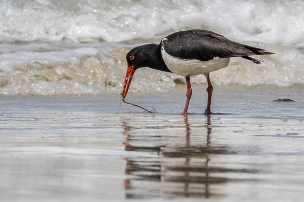 On a trip to Bruny Island earlier this year I came across a family of oyster catchers hanging out in the kelp and hunting for breakfast along the foreshore. It was fascinating to watch them pull the worms out of the sand.