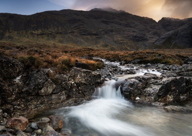 The rising sun arcing across the mountains finding a gap to light the landscape.