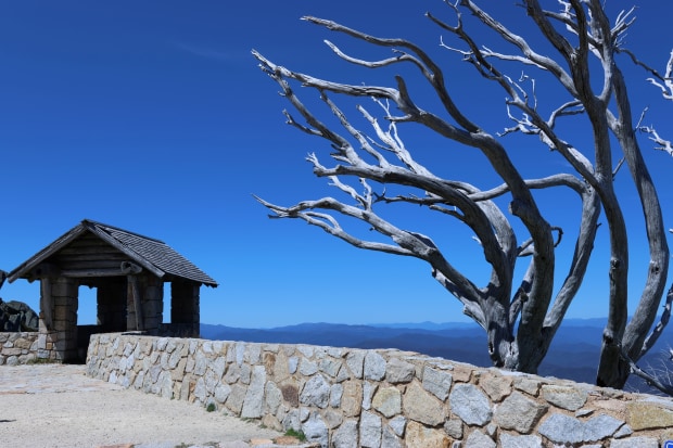 Visiting the Mount Buffalo Horn on a beautiful spring day. Clear sky's allowing you to see for miles. A ghost tree adding character to the location.