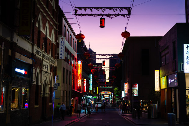 In the fading breath of day, this street becomes a passage, not a place. Lanterns hang like quiet constellations, guiding footsteps between shadowed bricks and neon script. Signs hum in red and gold, translating hunger, memory, and longing into light that spills across the pavement. Figures drift through the glow, half-silhouette, half-story, as the sky turns violet above them. In this hour, between workday and night, the city pauses just long enough to remember every voice it has ever carried.
