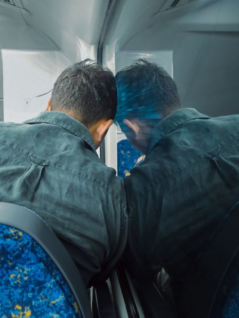 I took this on a train during a quiet moment, when the reflection in the glass made me think about who we lean on when we feel tired.