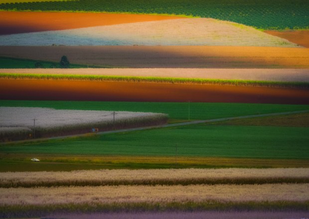 Roads and utility poles crisscross the fields of crops on the Atherton Tablelands in Queensland
