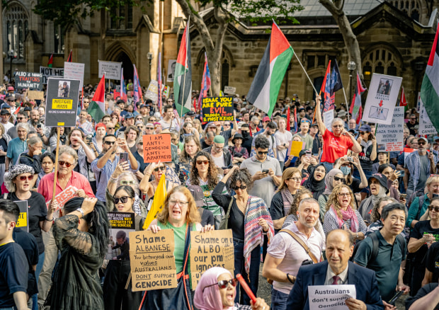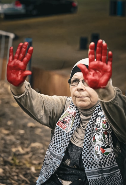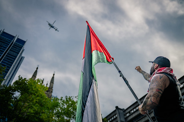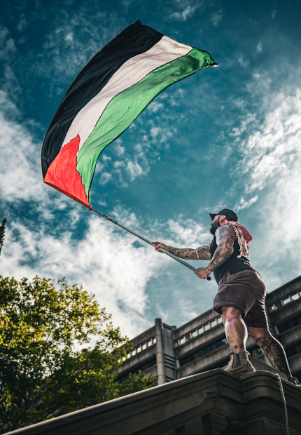 On 9 February 2026, demonstrators gathered at Sydney Town Hall to oppose the visit of the President of Palestine. The protest intensified as police intervened, leading to confrontations. This series captures the moment submission was refused — hands lifted, flags raised, faces turned upward. Under pressure and observation, the crowd held its position. No one yielded.