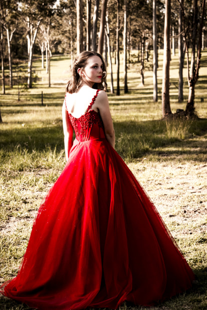 This portrait series captures a young girl from a country area, dressed in flowing crimson fabric, blending softness with strength as she prepares for her graduation and formal. Shot outdoors with dramatic lighting, the images highlight her calm expression, delicate details, and the striking contrast between the vibrant gown and the natural setting, The result I anticipated was a bold yet intimate study of elegance, emotion and form.