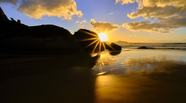 Having just picked up photography as a hobby in July this year, I was itiching to get out and explore Victoria - through my newfound lens - as soon as lockdown restrictions lifted. I'd never been to Whisky Bay (Wilsons Promonotory) before. However, an impromptu midday visit left me wanting more. I knew I had to plan my return at sunset to capture this serene little beach with views into Bass Strait and large granite boulders framing its shoulders. Several days later, and I was back to capture a great ensemble of thick low-level clouds and brilliant hues of purple, pink and gold. I think these 3 photos display the wonderful array of colours that can be seen in the sand, sea and sky at Whisky Bay, each conveying its beauty from a different perspective.