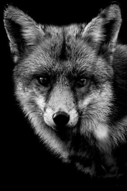 This black-and-white monochrome style removes distractions from the surrounding environment, placing full focus on the animal as the main subject. It presents the animal in a new light, drawing attention to fine details in the fur and eyes. The deep absence of light in the background isolates the subject and adds a sense of mystery, inviting the viewer to form their own interpretation of what the animal may have been thinking as it gazed into the camera.
